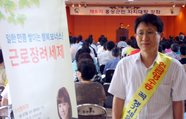 홍성세무서(서장 전명수)는 지난 16일 홍성군청 대강당에서 홍성군청이 주최한 홍성군민 자치대학 행사에 참석하여 현금영수증 및 근로장려세제에 대한 홍보를 하였다.