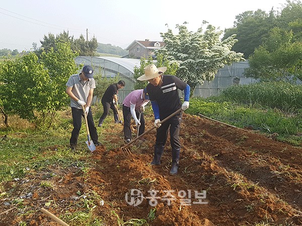 축산물품질평가원 대전충남지원(지원장 이상근)은 지난달 31일 이웃사랑을 실천하기 위해 하늘공동체(홍동면)를 찾아 부족한 일손을 돕는 봉사활동을 펼쳤다.