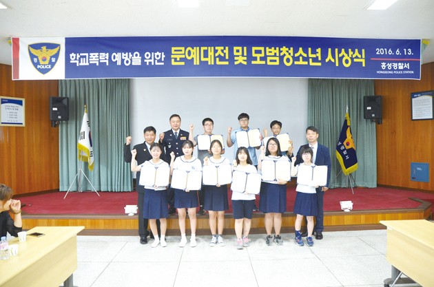▲ 홍성경찰서(서장 김근제)는 지난 13일 홍성경찰서 3층 대회의실에서 학교폭력 예방을 위한 표어·포스터 입선작 및 모범청소년에 대한 시상식을 개최해 30명의 학생이 참여했다. 저작권자 © 홍주일보 무단전재 및 재배포 금지 홍주일보 다른기사 보기 페이스북 카카오톡 URL복사 기사공유하기