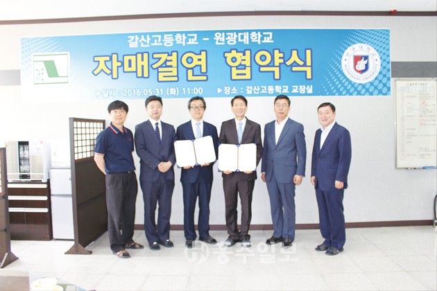 ▲ 갈산고등학교(교장 전종현)는 지난달 31일 갈산고등학교 교장실에서 원광대학교와 자매결연 협약을 체결했다. 협약에는 정헌영 원광대학교 입학관리처장과 관계자가 참석했다. 저작권자 © 홍주일보 무단전재 및 재배포 금지 홍주일보 다른기사 보기 페이스북 카카오톡 URL복사 기사공유하기