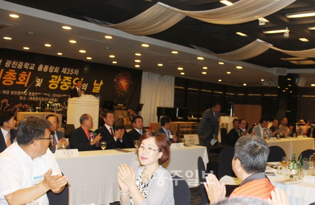 재경광천중학교 총동창회(회장 김병수) 제35차 정기총회 및 광중인의 날이 지난달 26일 서울 광화문 세종문화회관 세종홀에서 열려 홍문표 국회의원, 윤여향 광천중학교 교장, 이일수 광천중학교 총동창회장을 비롯한 역대 회장단들과 동문 500명이 참여해 자리를 빛냈다. 1부 만찬은 케이크 절단과 건배를 시작으로 2부 개회식에서는 국민의례, 교기입장, 개회선언, 내빈소개, 환영사, 격려사, 축사, 장학회, 감사패를 증정했으며 이어지는 3부 가요콘서트에서는 그룹사운드 딕패밀리와 우연이, 이범학, 노현희의 공연과 특별 찬조 출연으로 광천여중 6회 강민주 가수가 회룡포와 욕심없는 여자 등을 열창했다.