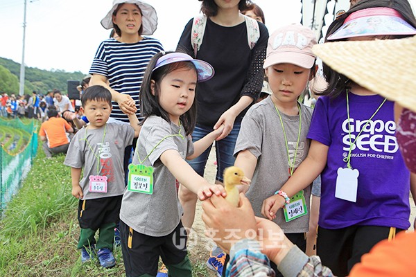 유기농업의 메카 홍성에서 생산자와 소비자를 잇는 이색 로컬푸드 행사를 진행해 이목이 집중되고 있다. 농업회사법인 동고동락과 홍성유기농영농조합은 지난 11일 장곡초등학교에서 대전 서원유치원 학부모 등 소비자 300여 명이 참석한 가운데 ‘엄마! 어디가? 홍성!!’이라는 제목의 로컬푸드와 농촌체험학습 연계 도농교류 행사를 진행했다. 이날 행사에서는 참가단체 간 자매결연 협약식을 시작으로 친환경농업을 상징하는 오리농군 입식행사, 벼농사 인형극 등이 진행됐고, 지역농업을 대표하는 다채로운 프로그램들을 통해 소비자와 생산자간 신뢰를 더욱 돈독히 하는 시간을 가졌다.