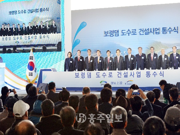 지난 2015년 9월 가을 가뭄이 심했던 충남서북부지역 유일한 수원인 보령댐의 저수율이 20%까지 떨어지자 국가정책조정회의에서 보령댐 도수로 건설을 결정해 공사에 착수했었다. 공사에는 약 640억 원이 들었다. 충남지역의 가뭄 해갈을 위해 건설된 ‘보령댐 도수로’가 부여군 금강 하류의 취수장(강물을 끌어올리는 곳)에서 통수식(通水式)을 갖고 지난 2월 22일부터 물이 흐르기 시작했다. 보령댐은 홍성·보령·서산·당진 등 충남 서부 지역 8개 시·군 48만 여명에게 생활용수를 공급하는 수원(水源)인데, 지난해 가을 극심한 가뭄으로 고갈 위기에 처했었다. 백제보에서 보령댐으로 도수로를 통해 물이 흐르면서 4대강 사업으로 조성된 보에서 가뭄 지역으로 물이 공급되는 첫 사례가 됐다. 보령댐 도수로는 총길이 21.9㎞로 국토부와 한국수자원공사가 3개월의 공사 끝에 완공했다. 지름 1.1m 크기의 관로를 통해 하루 최대 11만5000톤의 물이 백제보에서 보령댐으로 공급된다. 부여군의 금강 백제보 하류 6.7㎞ 지점에서 물을 끌어올려 부여군 외산면 반교천으로 물이 흘러가도록 설계됐다. 반교천에 방류된 금강 물은 웅천천을 거쳐 보령호로 들어가게 된다. 도수로를 통해 공급되는 수량(水量)은 충남 서부 48만여 주민의 하루 수요량(22만톤)의 절반을 약간 넘는다. 실제로 도수로 개통에 앞서 충남서북부지역에 대한 제한 급수를 종료했다.