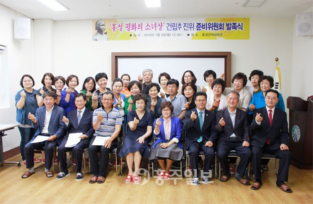 홍성 평화의 소녀상 건립추진위 준비위원회 발족식이 지난 4일 홍성군여성회관에서 열렸다. 이날 행사는 임이재 홍성군여성단체협의회장, 이종화 도의원, 방은희 군의원, 오석범 홍주지명찾기 위원장, 김진호 의료원장을 비롯한 여성단체 회장단 총 35명이 참여했다.