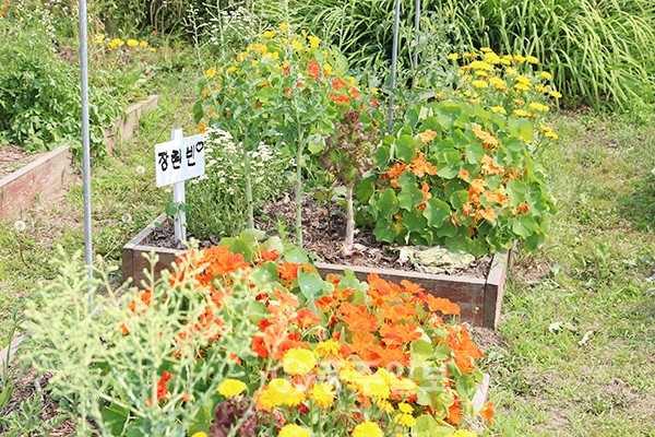 ‘꿈이 자라는 뜰’이라는 농장은 풀무학교 교사이기도 한 마을 총무 최문철 씨의 땅에 자리를 잡고 있으며 학생들과 교사들의 손길이 머무는 곳이다. 농장에서는 로즈마리와 라벤더, 민트 등 허브를 비롯해 각종 꽃나무들도 사이좋게 옹기종기 자리를 잡고 있다. 농장에 위치한 작은 비닐하우스 안에도 각종 야채들이 즐비하다. 농사를 지으며 농부의 땀과 눈물을 닮아가는 아이들의 이름이 적힌 푯말과 농작물들이 송정마을 뜰에서 꿈을 키우고 있다.