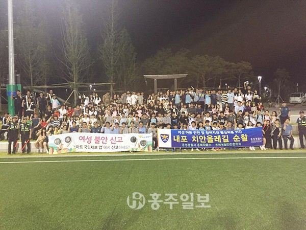 【홍북】 홍성경찰서 홍북파출소(소장 김기찬)는 지난 23일 내포신도시 관내 학생과 학부모, 경찰 및 생활안전협의회 등 협력단체 회원을 포함 총 250여 명이 참석한 가운데 ‘여성안전 특별치안대책’ 홍보 및 ‘내포신도시 치안올레길 순찰’을 실시했다.