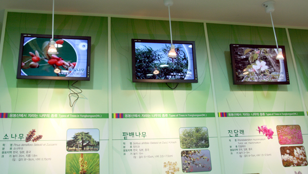 또한 나무의 횡단면을 보여주기 위해 소나무와 산 벚나무, 굴착나무 등 4가지의 나무를 분재해놨는데 벌써부터 곰팡이가 슬어있어 혹 전시관에 제습기 설치가 안 되어 있는지 의문이 든다. 제습기를 설치 안하면 박제물들의 관리에 치명적이고 전시관내의 각종 기계장치들의 결함에 원인이 될 수 있기 때문이다. 벌써 LCD 모니터가 작동안하는 것이 있는가 하면 길이 6m 정도로 제작된 용봉산 전경 모형물이 작동조차 안하고 있다.
