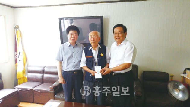 ▲ 홍성농협(조합장 정해명)은 지난달 25일 참전유공자회 홍성군지회를 찾아 국가를 위해 헌신한 유공자들에게 감사한 마음을 담은 성금 30만원을 전달했다.