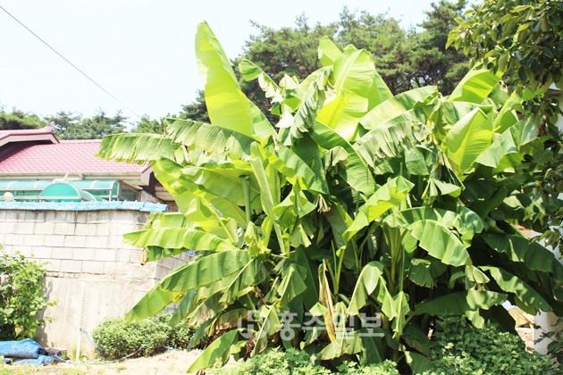 ▲ 홍성군에서도 바나나 나무가 자라고 있어 눈길을 끈다. 사진은 홍북면의 한 농가 입구에 바나나 나무가 자라고 있는 모습이다. 지구온난화로 열대 기후가 성큼 다가왔음을 새삼 느끼게 한다. 저작권자 © 홍주일보 무단전재 및 재배포 금지 서혜림 인턴기자 다른기사 보기 페이스북 카카오톡 URL복사 기사공유하기