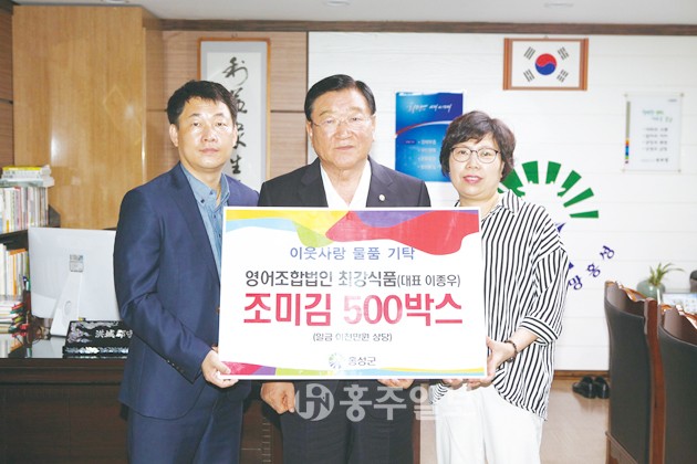 ▲ 영어조합법인 최강식품(대표 이종우)은 지난 13일 저소득층을 위해 조미김 500박스(2000만원상당)를 기탁했다. 기탁받은 김은 읍·면 저소득층 가정 및 사회복지시설에 지원될 예정이다. 저작권자 © 홍주일보 무단전재 및 재배포 금지 홍주일보 다른기사 보기 페이스북 카카오톡 URL복사 기사공유하기