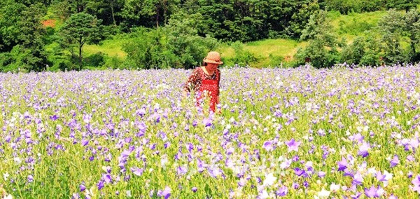 연일 무더운 날씨가 이어지는 가운데 보랏빛 도라지꽃이 만개해 이색적인 분위기를 연출하고 있다. 사진은 홍북면에 소재한 한국도라지(대표 이장영)에서 재배하고 있는 도라지 밭에서 이혜경 씨가 도라지 꽃의 빛과 향에 심취해 있는 모습. 저작권자 © 홍주일보 무단전재 및 재배포 금지 장윤수 기자 다른기사 보기 페이스북 카카오톡 URL복사 기사공유하기