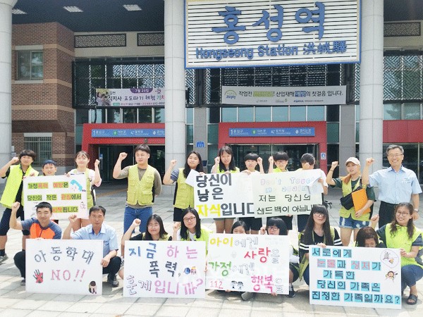 이번 아동학대예방캠페인은 충남서부아동보호전문기관(관장 주진관)과 함께 오전 11시부터 오후 3시까지 홍성역을 이용하는 이용객들에게 아동학대의 심각성을 알리고, 아동학대예방 리플렛 나눠주기, 피켓 전시, 아동학대예방 서명운동 등의 다양한 캠페인 활동을 진행했다.