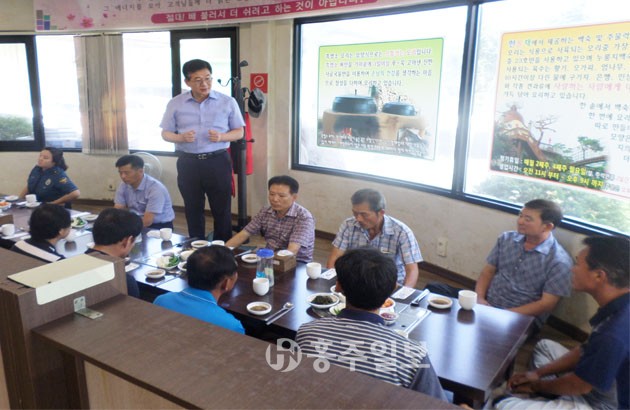 【금마】 홍성경찰서(서장 양윤교) 금마파출소에서는 지난 22일 오전11시 관내에 있는 식당을 이용해 자발적인 ‘마을보안관’ 회의를 개최해 참석자는 물론 마을 전체의 주민들에게 큰 호응을 얻고 있다. 前금마면장, 새마을지도자, 부녀회장, 이장, 세림산업부장 등으로 이루어진 마을보안관 모임은, 두 달에 한 번 개최되며 이날 회의에서는 자체 임원 선출 및 추후 간담회 일정을 잡았다. 이 날 회의에서 금마파출소 심희석 소장 및 마을 보안관들은 △경찰현안업무 설명 및 여성안심신고 등 홍보 당부 △마을별 여성 불안요인이 되는 인적·환경적 요소 점검 및 개선 등의 활동을 했다.