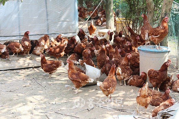답답한 케이지 아닌 넓은 마당에서 방목하는 농장