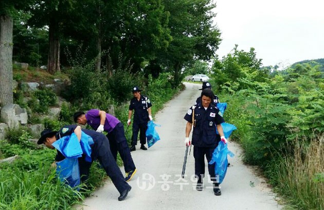 【구항】구항면 자율방범대(대장 김기우)는 지난달 24일 공리저수지 인근 환경정화 활동을 펼쳤다. 이날 대원 8명은 낚시인파들이 남긴 쓰레기로 더러워진 저수지 인근 공리마을의 쓰레기를 줍고 저수지 오염을 방지 했다. 공리마을은 공수골 우물이 넘치는 물 좋은 마을로 최근 공리저수지에 쓰레기들이 버려져 저수지를 찾는 관광객들이 불편했다는 이야기를 했다. 이를 들은 자율방범대원은 면과 협의해 저수지 인근을 청소해 깨끗한 구항면을 조성했다.