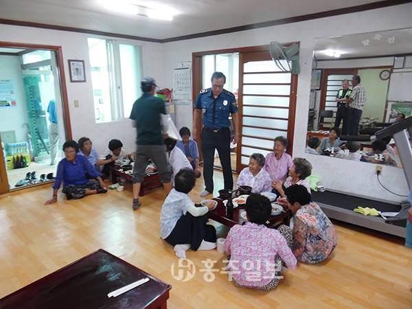 【서부】 홍성경찰서 서부결성파출소(소장 이상민)는 최근 관내 마을회관을 방문, 할머니들을 대상으로 여성안전을 위한 문안순찰을 실시하고 있다.<사진>