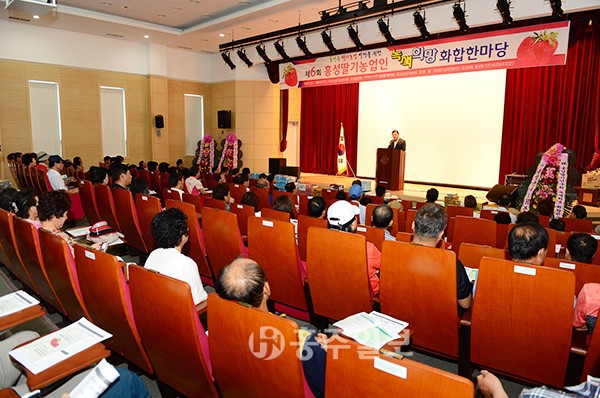 홍성군딸기연구회(회장 박관양)는 지난 17일 연구회원들을 비롯한 관내 딸기농업인 250여명이 참석한 가운데 홍성군농업기술센터 3층 대강당에서 ‘제6회 녹색희망 화합한마당’을 성황리에 개최했다.<사진>