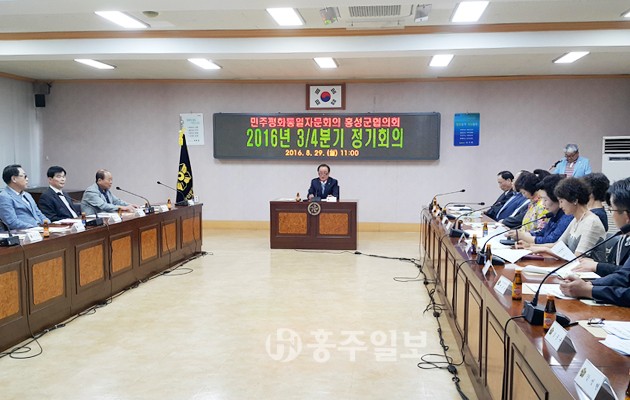 ▲ 민주평화통일자문회의 홍성군협의회(회장 이무형)는 지난달 29일 오전 군청 회의실에서 자문위원 29명이 참석한 가운데 3분기 정기회의를 개최했다.