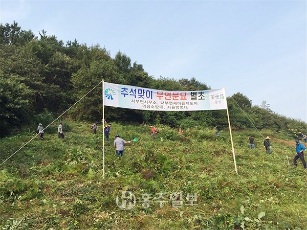 이번 벌초작업에는 이장협의회(회장 박헌규 산수동 이장), 새마을 지도자협의회(회장 김호주), 의용소방대(대장 오기환), 자율방범대(대장 민경수), 서부면사무소 등 5개 기관·사회단체가 참여했다.