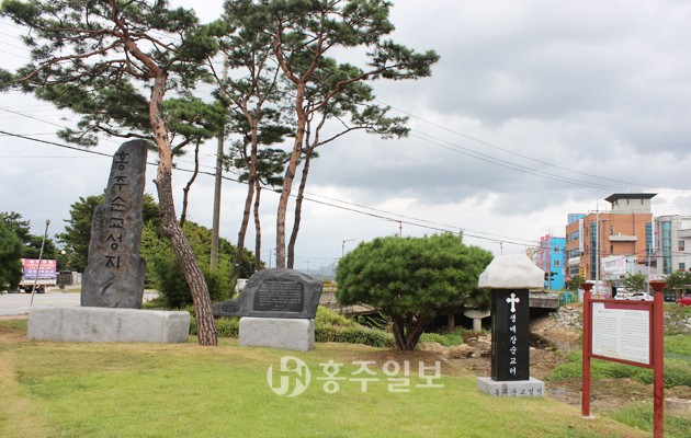 지금의 홍성으로 불리는 홍주지역은 한국 천주교회가 창설된 직후부터 신앙이 빠른 속도로 전파된 내포지역으로 분류되는 곳이다. 충청도 지역에서는 공주 다음으로 많은 순교자들을 배출할 정도로 교세가 번성한 곳이 바로 ‘홍주’였다. 그러다 보니 홍주지역의 순교자들이 처음으로 신앙을 증거한 장소는 다양하게 분포돼 있다. 홍주의 한복판에 위치하고 있는 홍주성은 성(城) 전체가 순교의 현장이기도 하다. 군청, 객사, 동헌 등 구석구석이 처형지로 사용됐던 곳이며, 조양문, 저잣거리도 바로 순교의 생생한 숨결이 배어 있는 장소이기 때문이다. 청사 안뜰에 무심하게 서 있는 고목들은 당시 순교자들이 처분만을 기다리며 오랏줄로 꽁꽁 묶여 있던 기둥들이었고, 바닥에 깔린 흙 위에는 선조들의 피와 고통이 서려 있다. 다만 아쉬운 것은 이 지역에서 모진 고통을 당하고 숨을 거둔 선조들이 정확하게 누구누구이며, 얼마나 많은지가 명확하게 알려져 있지 않다는 점은 큰 아쉬움이다. 과거 홍주목이란 관할 지역의 규모와 지리적 위치로 볼 때 많은 순교자가 배출 됐을 것으로 추정되지만 당시 홍주군의 문서에는 천주교 박해와 관련된 부분들이 전혀 나타나있지 않아 이에 대한 조사와 정리를 통한 기록 작업 등 성역화사업이 시급한 실정이라 하겠다.