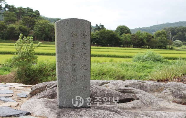 기록상으로 홍주지방에서의 첫 순교자는 1793년 원 베드로이며, 1797년에 박해가 발생 이듬해 원 야고보, 배 프란치스코, 방 프란치스코 등이 잡혀 방 프란치스코는 이곳에서 순교하고 나머지는 청주로 이송돼 순교한 것으로 전해지고 있다. 하지만 ‘홍주’의 관할지역의 범위와 지리적 위치 등을 고려할 때 상당수의 천주교 신자들이 더 많이 순교했을 것으로 추정되고 있다. 천주교 신자들에 대한 혹독한 탄압을 일삼았던 흥선대원군이 1866년 병인양요와 1871년 신미양요에서 승리하고, 그 해 서울 종로와 전국 각지에 세운 척화비가 홍주(지금의 홍성군 구항면 오봉리 산5)에도 현재까지 남아 있기 때문에 박해의 정도를 미뤄 짐작할 수 있는 상징물로 후세들에게 전해지고 있다.