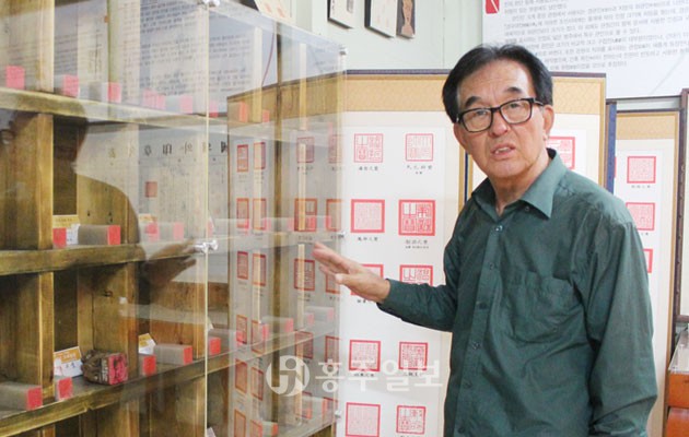 문학관에서 진행된 인터뷰 후에 인장박물관으로 가기위해 밖으로 나섰다. 문학관에서 인장박물관에 가려면 신발을 신고 2층으로 올라가야 했다. 이 관장은 기자가 벗어놓은 신발을 신기 편하도록 가지런히 돌려 놓아주었다. 2000년 개관한 인장박물관에는 이 관장이 20살 때부터 모아놓은 작가들의 도장으로 가득했다. 이 관장이 16살 때 헌책방에서 구입한 김소월의 시집에는 소월이 스승 안서에게 드리는 글을 쓰고 끝에 낙관을 찍은 책이었다. 그 낙관이 멋진 예술품으로 느껴졌던 이 관장은 20살이 되고 오영수 은사의 집을 드나들며 서재에 놓여있는 거북이 모양의 희귀한 인장을 발견했다. 신기하여 어루만지던 그에게 오 은사는 귀한 인장을 내주었다. 지금도 그가 가장 아끼는 흥선대원군의 인장이다.