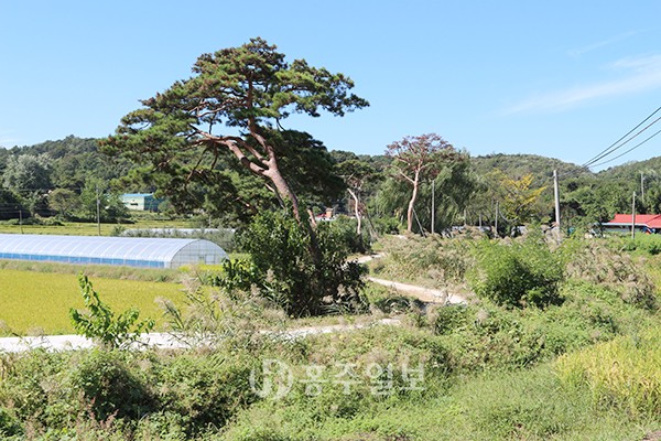 또한 마을이 곡식을 품은 키 형태를 하고 있다는 이야기도 전해 오는데, 곡식들이 빠져나가지 못하도록 마을길을 중심으로 50여 그루의 노송들이 자리를 잡고 있었다. 하지만 마을 경지정리 및 도로개선 사업을 하면서 사라지거나, 병 들어 죽은 소나무가 많아 현재는 10여 그루의 소나무가 남아 마을을 지키고 있다.