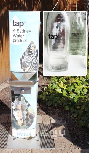 ▲ 호주 타룽가주동물원의 수돗물 음료대. 오른쪽 위 사진은 시드니시 수돗물 브랜드.