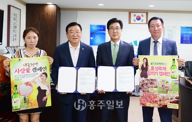 ▲ 홍성군은 맥키스컴퍼니와 홍성알리기 캠페인 협약식을 갖고 농·특산물 공동브랜드 ‘내포천애’와 홍성군 대표 축제 알리기 등 홍보에 적극 나설 계획이다. 저작권자 © 홍주일보 무단전재 및 재배포 금지 홍주일보 다른기사 보기 페이스북 카카오톡 URL복사 기사공유하기