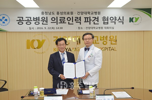 건양대학교병원(원장 최원준)과 홍성의료원이 지난 22일 건양대병원 본관 대회의실에서 의료인력 파견 협약을 체결했다.<사진>
