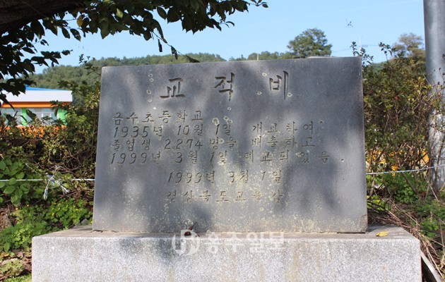 금수문화예술마을은 도로변 운동장의 끝자락을 감싸고 있는 100년의 세월이 넘은 듯한 고목들이 담벼락을 대신하고 있다. 한눈에 봐도 한 아름이 넘을 듯한 굵은 벚나무와 단풍나무 10여 그루가 지나온 역사를 감싸 안은 채 자리 잡고 있다. 봄에는 벚꽃, 여름에는 그늘, 가을에는 단풍이 사람들의 발길을 끌어당길 수밖에 없는 천혜의 좋은 환경이다. 마치 어머니의 자궁처럼 포근하면서도 고요한 공간이 아늑함으로 안정감을 주고 있다. 정남향인 데다, 옛날 학교 주변이라서 앞으로는 시야가 확 트였다. 그래서 겨울에는 하루 종일 남향의 따뜻한 햇살을 즐길 수 있는 곳이다. 보통 시골학교를 마을의 첫 번째 명당에 짓는다는 말이 있듯이 이곳도 명당자리다. 교정 앞에 흐드러지게 핀 벚꽃도 풍광에 한 몫을 할 것으로 기대되는 곳이다.