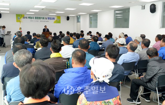 ▲ 홍성군농업기술센터는 지난 23일 홍성군쌀연구회원과 벼농사 시범사업 추진 농가 등 100여명이 참석한 가운데 2016년 벼농사 종합평가회를 개최했다. 저작권자 © 홍주일보 무단전재 및 재배포 금지 홍주일보 다른기사 보기 페이스북 카카오톡 URL복사 기사공유하기