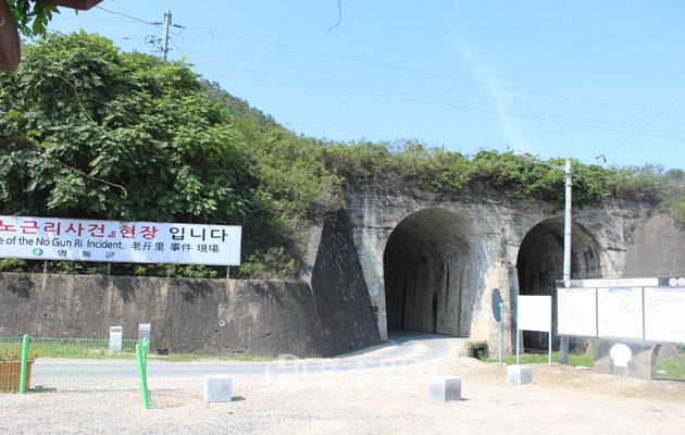 한편 평화공원 근처의 쌍굴다리는 사건의 발원지이기 때문에라도 반드시 들러야 할 필수코스다. 지난 1934년 길이 24.5m, 높이 12.25m로 가설된 이 쌍굴다리 교량은 2003년 문화재청의 등록문화재 59호로 지정됐다. 2010년에는 이곳을 소재로 한 영화 ‘작은 연못’이 개봉되기도 했다. 지난 1999년에는 철도공사가 상판 갈라짐과 물이 새는 것을 막기 위해 1.2cm 두께의 시멘트를 덧씌웠다가 탄흔의 은폐 논란이 일기도 했다. 영동군은 지난 2011년 이 다리 교각 안쪽에 덮어씌운 시멘트를 일일이 손으로 긁어 낸 뒤 탄흔을 찾아 보존 처리했다. 정구도 이사장은 “노근리 평화공원은 전쟁의 참상을 겪지 못한 세대에게 왜 전쟁이 다시 일어나서는 안 되는지를 알려주는 곳이자 인권 신장과 세계 평화에 기여하는 역사의 현장으로 자리매김하고 있다”고 말했다.