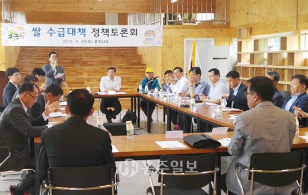 지난 달 29일 장곡 오누이권역센터에서 열린 토론회는 허승욱 도 정무부지사를 비롯해 이은만 쌀전업농 충남도회장, 박의열 농업경영인 정책부회장, 장명진 전농의장 등 농업인단체와 한국농촌경제연구원 관계자 등이 참석했다. 특히 농식품부, 도, 시·군 공무원 및 양곡수급을 담당하는 농협, 양곡을 매입하는 RPC, 현장에서 쌀 재배를 하는 농업인 등 각 분야별 농정주체들이 참석해 의미를 더했다. 토론회에서 농식품부는 2016년 수확기 쌀 수급안정대책 방향에 대한 주요 내용으로 △공공비축미 36만 톤, 해외공여용 3만 톤 매입 △RPC 벼 매입자금 추가지원 및 벼 매입자금 지원대상 확대 등 관련제도 개선 △수확기 동안 밥쌀용 수입쌀의 입찰판매 물량·횟수 조절로 국내시장 미치는 영향 최소화 등이 제시됐다.
