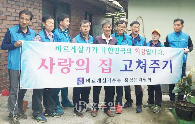 【홍성】홍성읍 바르게살기운동위원회(회장 장동면)는 지난 18일 홍성읍 고암4리에 거주하고 있는 취약계층 가구의 도배장판 및 내부 대청소를 실시했다.<사진>