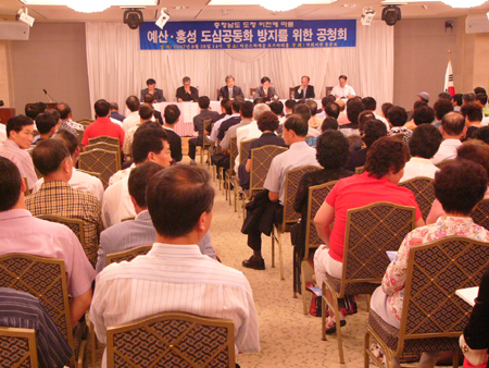홍문표 의원은 발제에서 “도청신도시 건설이 지역 발전을 이끌 견인차가 될 것은 분명하지만 예산·홍성 원도심 공동화 또한 심히 우려되고 있다”며 “도청신도시 성장과 더불어 원도심 공동화를 방지하고 동반성장을 도모할 수 있는 법과 제도적 장치 마련이 절실하다”고 말했다.