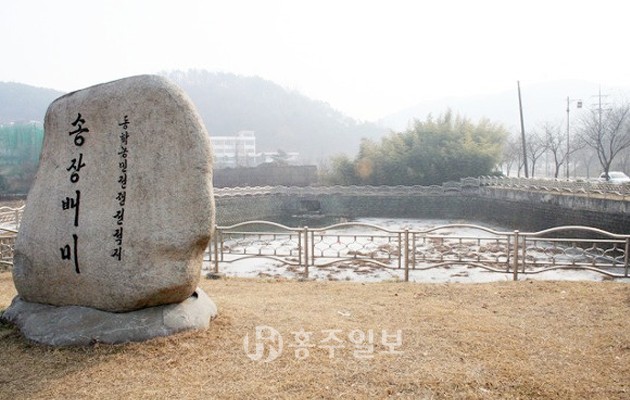 하고개를 넘어서면 무령로와 왕릉로가 만나는 모서리에서 ‘송장배미’로 불리는 ‘용못(공주시 향토문화유적기념물 제4호)’을 만날 수 있다. 이곳이 1894년 가을 동학농민군 최후의 전투였던 우금티 전투에서 관군과 일본군에게 밀린 농민군이 무수히 죽은 곳으로 알려지고 있는 곳이다. 전투에서 죽어간 동학군들의 시체를 전부 다 처리할 수가 없어서 였는지 이 연못에 시체를 넣었다는 장소인 만큼 민초들의 한을 담은 조형물에서도 서글픔이 묻어나는 듯하다. 연못 앞에는 공주금성여자고등학교가 있다. 무령왕릉이 있는 공주송산리고분군(公州宋山里古墳群)은 송장배미에서도 가깝다. 역사적 가치가 높은 백제의 고분들이 밀집해 있는 지역인 송산리는 은진송씨들이 살던 마을의 지명이라 전한다.
