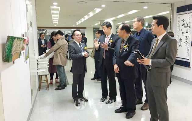 내포미술협회(회장 이헌용) 창립 기획 전국 초대작가전 ‘길에게 묻다, 창을 바라보다, 문을 두드리다’가 지난달 28일부터 오는 10일까지 충남도청 본관 지하1층 로비전시장에서 열리고 있다.<사진>