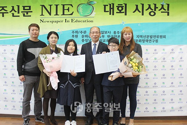 ㈜홍주일보사(대표 한관우)가 주최하고 문화체육관광부·한국언론진흥재단·지역신문발전위원회가 후원한 ‘2016 제4회 홍주신문 NIE 대회-나만의 신문 만들기’ 시상식이 지난 5일 홍성아이쿱센터 2층 체험실에서 열렸다.<사진>