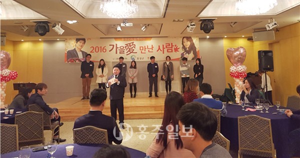 홍성군은 지난 4일 덕산 리솜스파캐슬에서 ‘가을愛만난 사람’(미혼남녀 피앙새만들기) 행사를 개최했다.<사진>