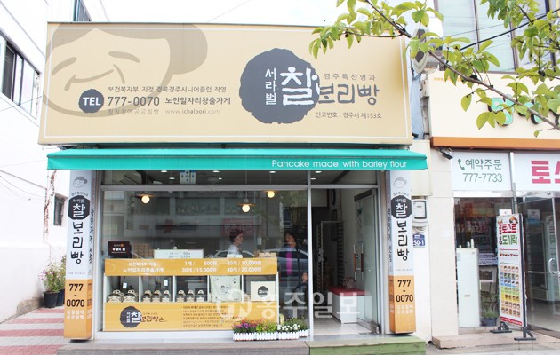 서라벌찰보리빵 가게는 지난 2005년 3월에 문을 열었다고 한다. 서라벌찰보리빵은 경주시니어클럽이 노인일자리를 만들려고 운영하는 점포다. 점포 두 곳에서 하루 4시간씩 주3일 일하는 방식으로 65세 이상 어르신 22명이 일하고 있다. 한명의 일자리를 노인들 10~12명이 나누고 있는 셈이다. 그래서 운영진은 불경기에도 최대한 일거리를 유지하려고 애쓰는 이유다. 서라벌찰보리빵은 보건복지부지정 노인 일자리 창출가게이기 때문이다. 신라문화원의 경주시니어클럽에서 운영하고 있는 서라벌찰보리빵 가게는 수익금 전부를 노인 일자리 창출과 가게 운영비 등으로 쓰이고 있다.
