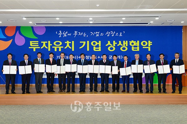 홍성군은 지난 10일 충남도청 대회의실에서 열린 합동 투자협약(MOU) 체결식에서 ㈜동신포리마(대표 오동혁)와 투자유치 협약을 체결했다.<사진>