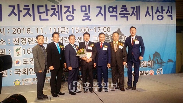 충청남도 최우수축제인 홍성역사인물축제가 서울 여의도 전경련회관 컨퍼런스센터에서 진행된 ‘2016 도전 자치단체·지역축제대상 시상식’에서 지역축제 부문을 수상했다.<사진>