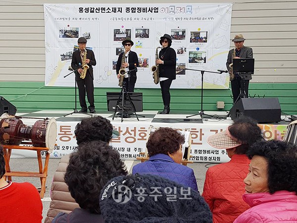 전통시장의 활성화와 갈산시장을 방문하는 고객들을 위해 마련된 이번 행사는 유준의 사회로 각설이 공연팀과 양연주, 구행모, 통기타 연주팀, 홍성색소폰 봉사단 등의 무대가 화려하게 꾸며져 관심을 끌었다. 이어진 ‘금반지를 찾아라’ 행사에서는 금반지를 비롯해 물병과 각티슈 등이 상품으로 제공돼 인기를 끌었다.