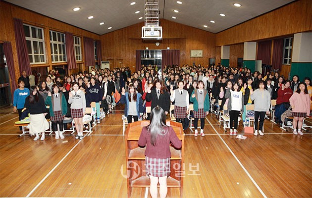 홍성여고(교장 유병대)가 2018 수능 360일을 앞둔 22일 저녁 수능대박을 기원하는 다짐대회<사진>에서 현재 서울대 영어교육과 3학년에 재학 중인 홍성여고 김지은 졸업생은 후배들을 이렇게 격려하며 수시 및 정시 전형을 위한 준비에 대해 자세히 안내했다.