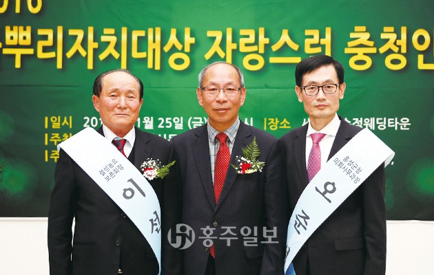세종·충남지역신문협회(회장 이평선)가 선정·시상하는 ‘2016 풀뿌리자치언론대상충청인상’에 이선종 결성농요보존회장과 오준석 홍성군의회사무과장, 김종래 삽교농협 조합장, 한광진 오가농협 조합장 등 4명이 분야별 특별상을 수상했다. 지역자치 발전에 공헌한 인물을 발굴·시상하는 ‘2016 풀뿌리자치대상 충청인상 시상식’이 25일, 세종시 조치원읍 수정웨딩타운에서 열렸다.