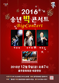 홍주문화회관은 오는 9일 오후 7시, 한국 대중음악의 거장인 ‘박강성, 신효범, 최성수’가 출연하는 “2016 송년 빅콘서트”를 개최한다.