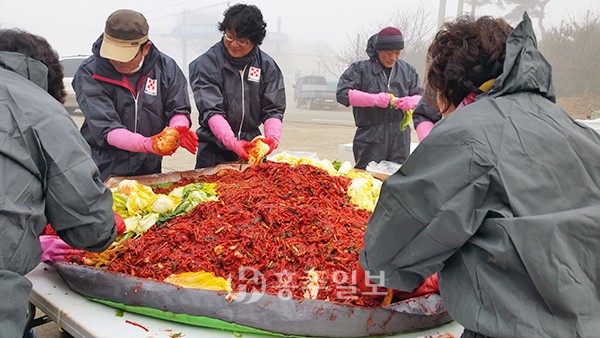 【장곡】장곡면 유신청년회(회장 조원오)는 지난달 27일 소외된 이웃의 따뜻한 겨울나기를 위한 사랑의 김장김치 담그기 행사를 가졌다.<사진>