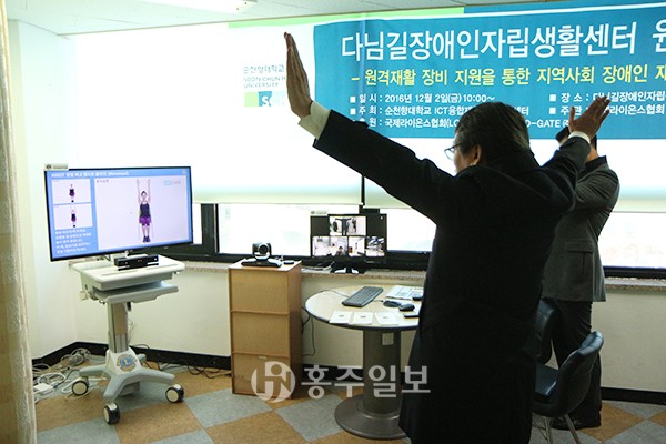 이번 원격재활장비 도입은 홍성 다님길센터와 천안에 위치한 충남 중증장애인 자립생활센터 등 두 곳에 기증됐으며, 순천향대 의료ICT기술·경영융합원(원장 신원한 순천향대부천병원장)이 적극적인 기술 지원에 나섰다.