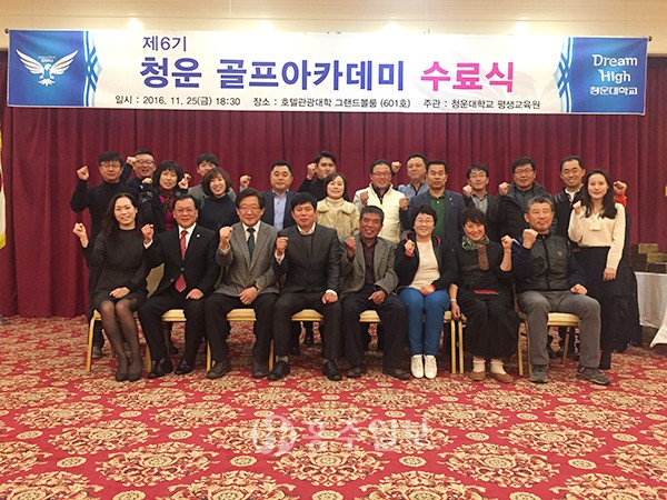 청운대학교 평생교육원(원장 김상구)은 지난달 25일 청운대 그랜드볼룸(호텔관광대학 601호)에서 제6기 청운 골프아카데미 수료식을 가졌다.<사진>